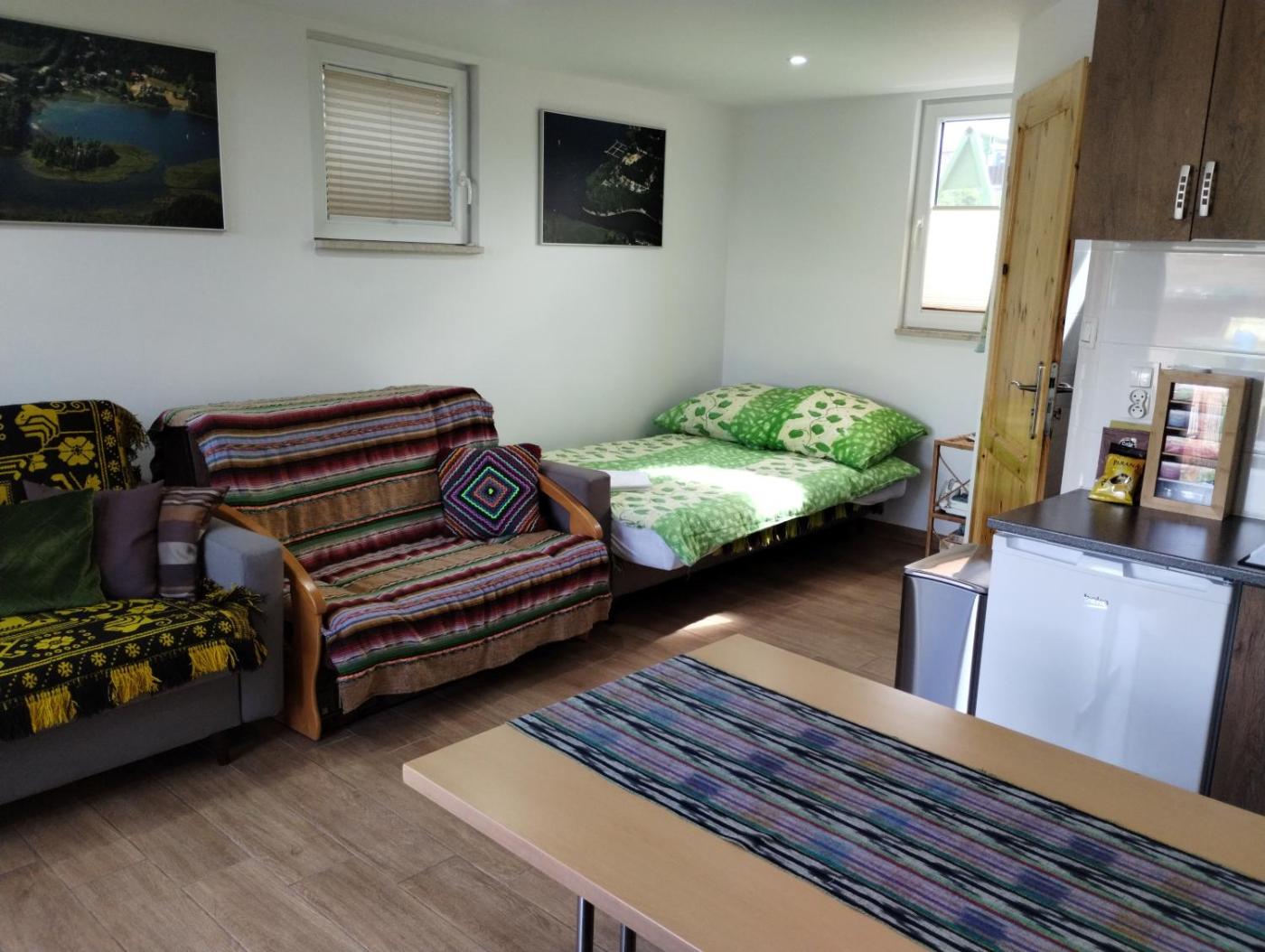 Dom z 1 sypialnią. Boasting a private entrance, this air-conditioned holiday home comes with a kitchen, 1 bedroom and 1 bathroom with a shower and a hairdryer. In the well-fitted kitchen, guests will find a stovetop, a refrigerator, kitchenware and an electric kettle. Featuring a terrace with garden views, this holiday home also features soundproof walls and a flat-screen TV. The unit has 3 beds. Dom wakacyjny - 3 osobowy. Powierzchnia pokoju ok.: 32 mkw.